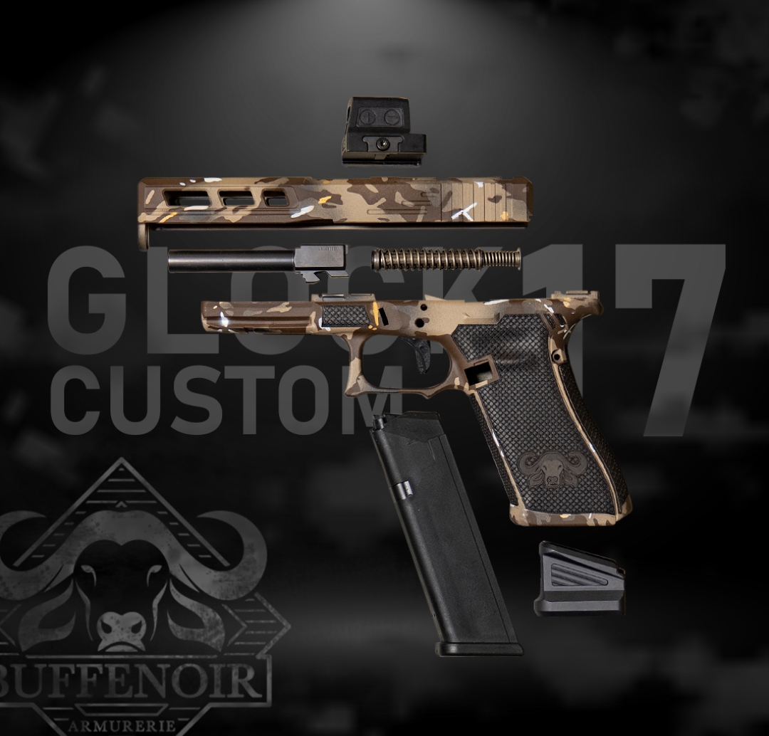 Bien sûr, vous pouvez vous contenter de changer les pièces du mécanisme. On trouve de nombreuses marques qui proposent des pièces match pour tous modèles de Glock. Vous pouvez aussi ajouter un puits de chargeur, des talons de chargeur, de nouveaux organes de visée… Ceci rendra votre arme plus performante et la démarquera de la quantité astronomique de Glock sur le marché.